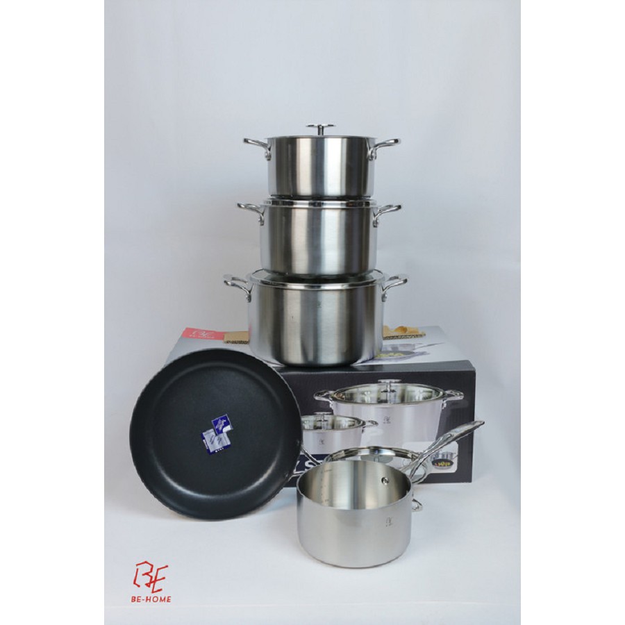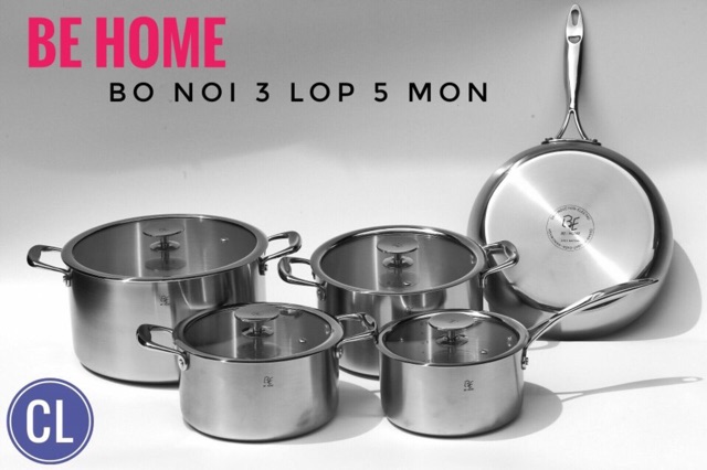 BỘ NỒI INOX 5 CHIẾC BEHOME 3 LỚP ĐÁY LIỀN -INOX 304