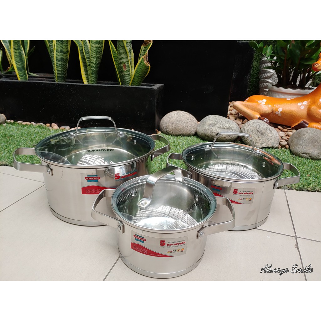 Nhà cửa & Đời sống > Dụng cụ nhà bếp > Nồi || BỘ NỒI INOX 5 ĐÁY SUNHOUSE SH780Còn hàng