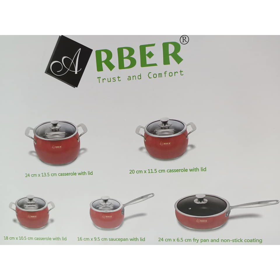 🌼🌼🌼 BỘ 5 NỒI CHẢO ARBER CAO CẤP CHÍNH HÃNG ĐỨC AB06CC/AN06SMD🌿🌿🌿 Giá hãng 2500k