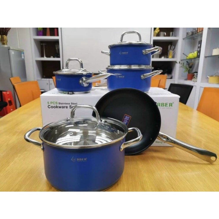 BỘ NỒI INOX ARBER ĐỨC 5 MÓN NAVY BLUE HÀNG CAO CHÍNH HÃNG