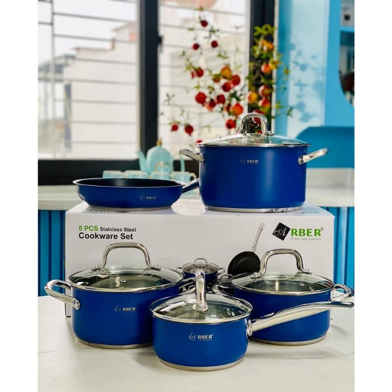 Nhà cửa & Đời sống > Dụng cụ nhà bếp > Nồi || BỘ NỒI INOX ARBER ĐỨC 5 MÓN NAVY BLUE HÀNG CAO CHÍNH HÃNGCòn hàng