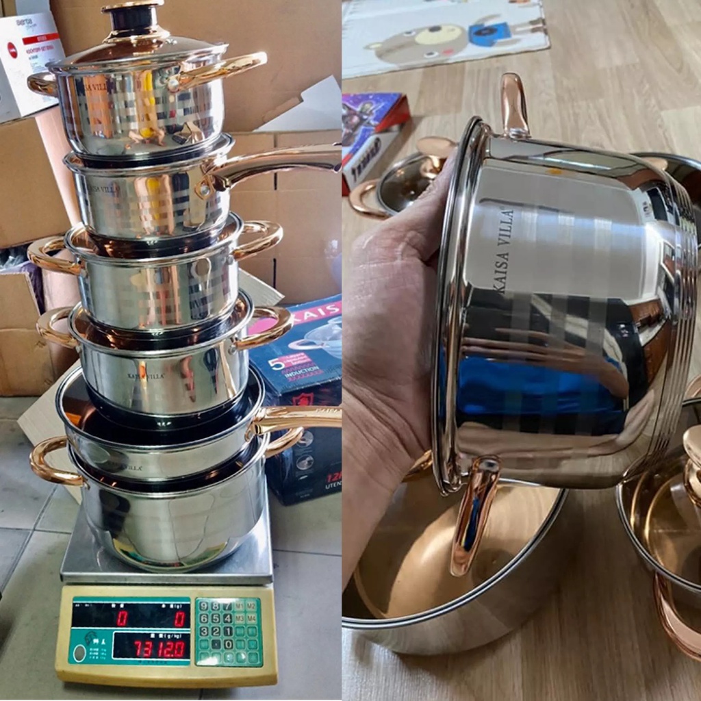 BỘ NỒI INOX VUNG KÍNH 5 ĐÁY TIẾT KIỆM NĂNG LƯỢNG KAISA VILLA 6 MÓN 12 CHI TIẾTLô trước tính cất 1 bộ để dùng thế mà bán quá đà.