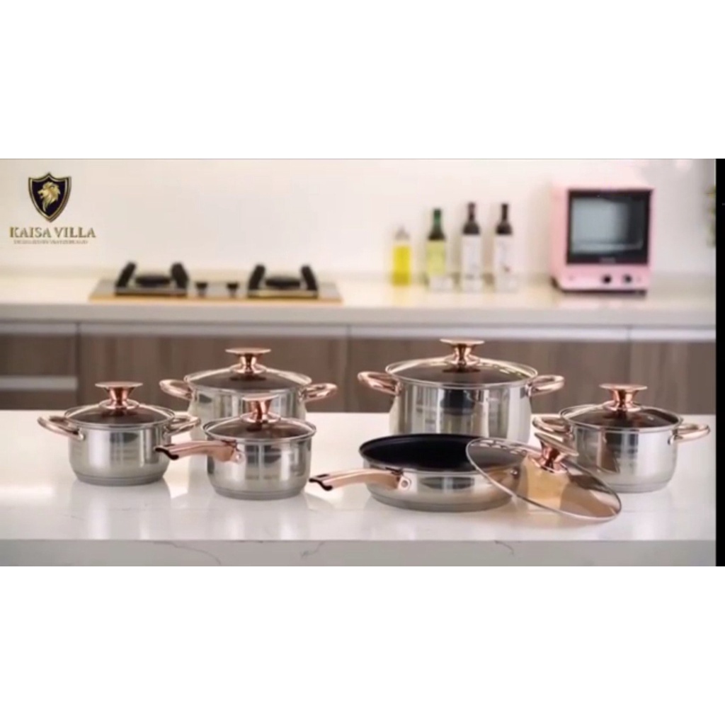 BỘ NỒI INOX VUNG KÍNH KAISA VILLA 6 MÓN 12 CHI TIẾT TAY CẦM TRÁNG MEN CHỐNG DÍNH [KV-6618]