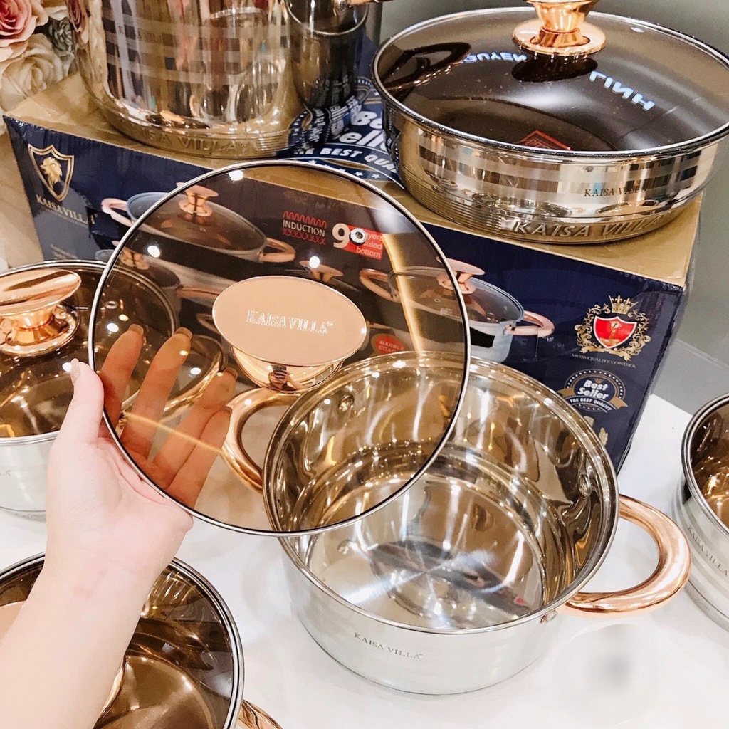Nhà cửa & Đời sống > Dụng cụ nhà bếp > Nồi || BỘ NỒI INOX VUNG KÍNH KAISAVILLA 6 MÓN 12 CHI TIẾT TAY CẦM TRÁNG MEN CHỐNG DÍNH MÃ KV-6618Còn hàng