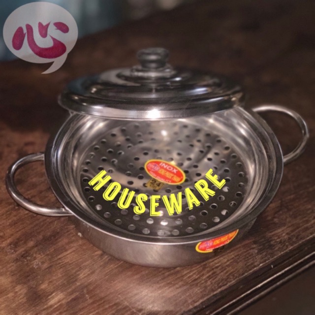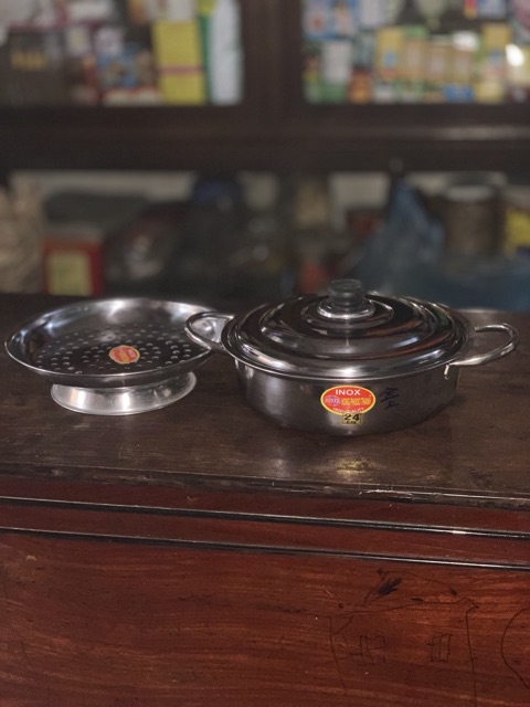 Nồi lẩu inox 24cm và dĩa hấp 24cmChất liệu inox 430