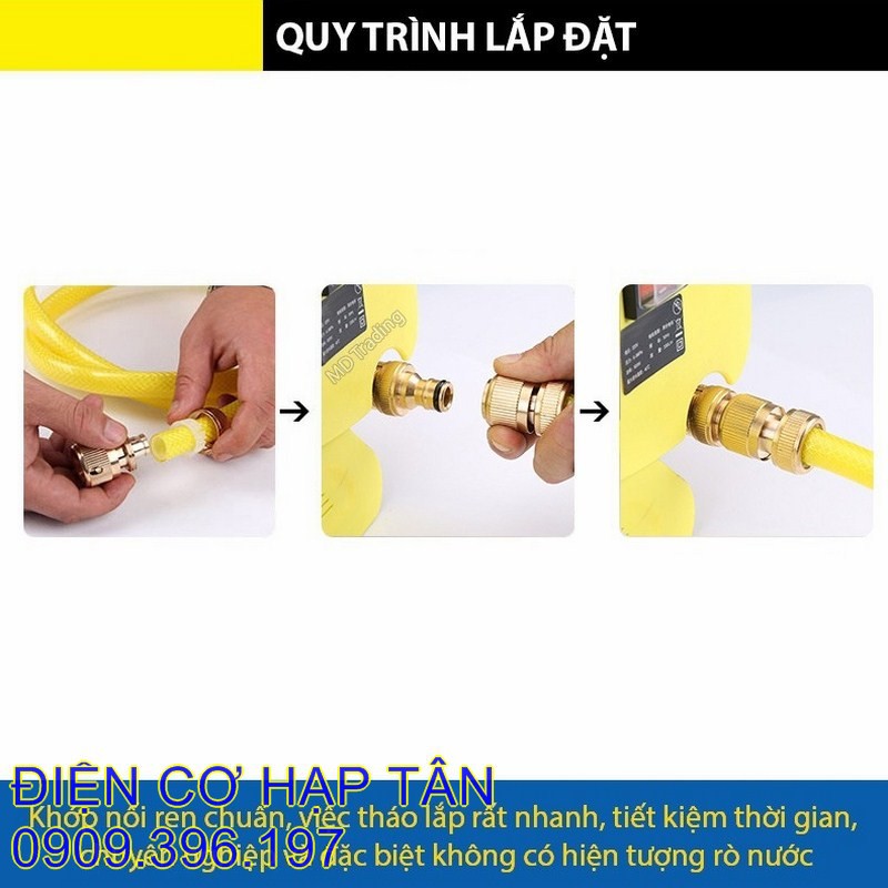 - Dùng để nối siêu nhanh dây cấp nước với đầu vào máy xịt rửa áp lực cao