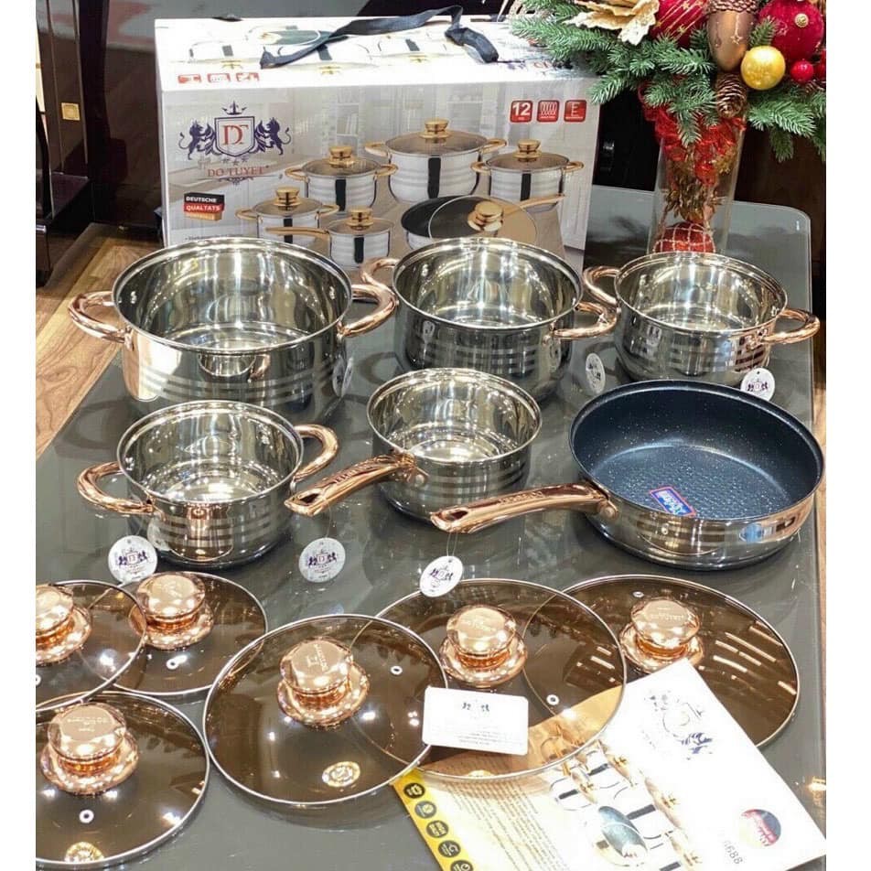 Set 6 món -12 chi tiết bao gồm :– 1 Nồi to có nắp kính: đường kính 24 cm, dung tích 6,6Lít, chiều cao 14,5cm.