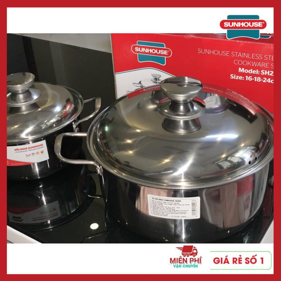 BỘ NỒI SUNHOUSE SH224, BỘ NỒI INOX SUNHOUSE SH224✔️✔️✔️ Chuỗi cửa hàng phân phối đồ gia dụng uy tín: Gia dụng Hamter