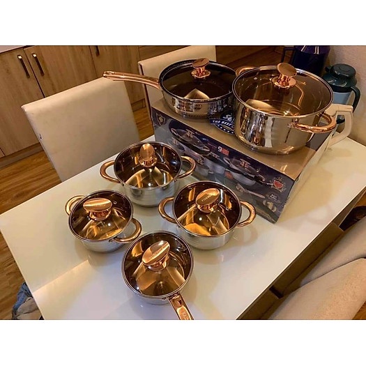 BỘ NỒI VÀ CHẢO 6 MÓN 12 CHI TIẾT Nhập khẩu nguyên bộ từ Đức Kaisa Villa 5 đáy inox 304 bảo hành 5 năm