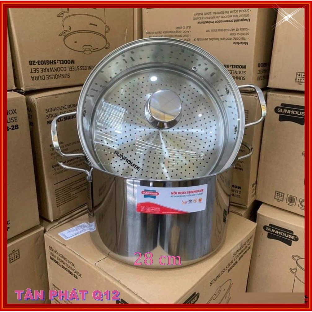 Nhà cửa & Đời sống > Dụng cụ nhà bếp > Nồi || BỘ NỒI XỬNG SUNHOUSE 28CM (DÙNG ĐƯỢC BẾP TỪ, 1 ĐÁY)Còn hàng