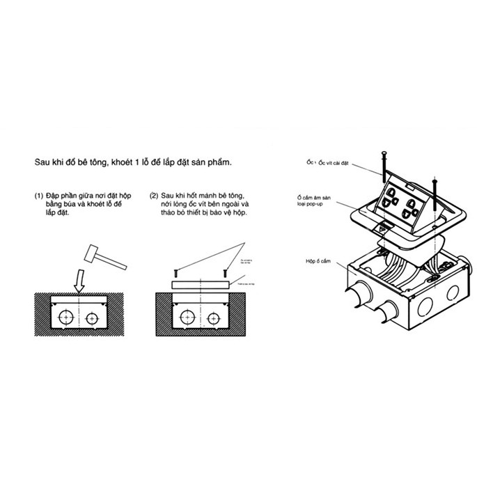 - Ổ cắm âm sàn là bộ âm sàn ổ cắm giảm tốc. Ngoài ra với khung của ổ cắm có thể lắp được rất nhiều modul theo nhu cầu sử dụng của con người.
