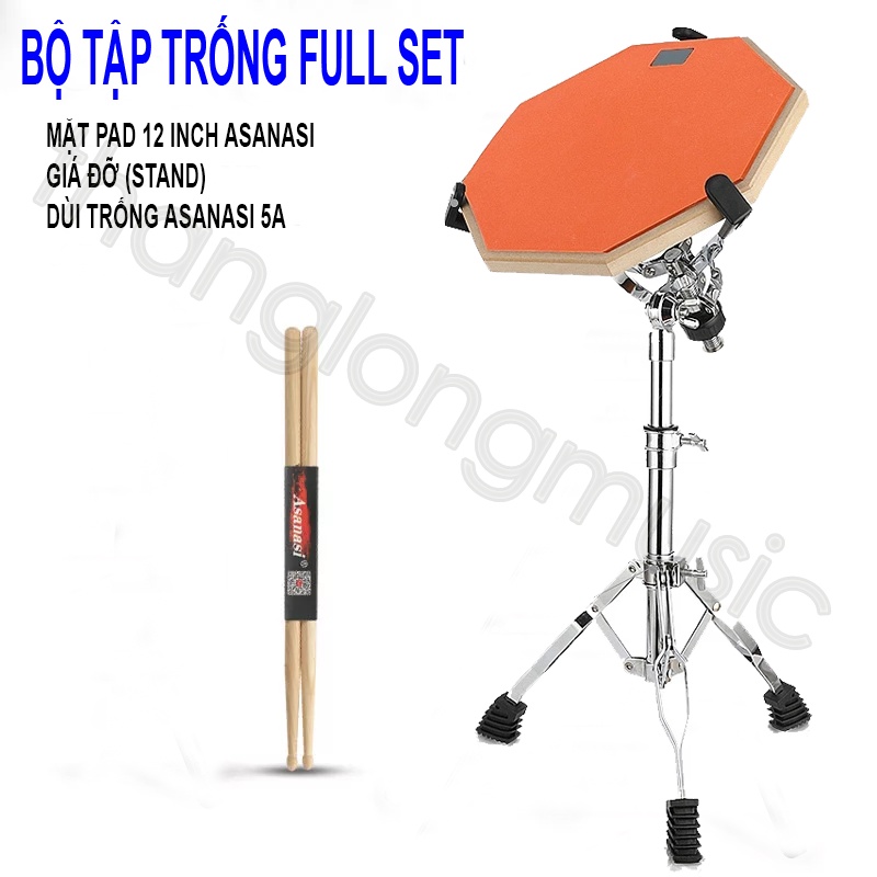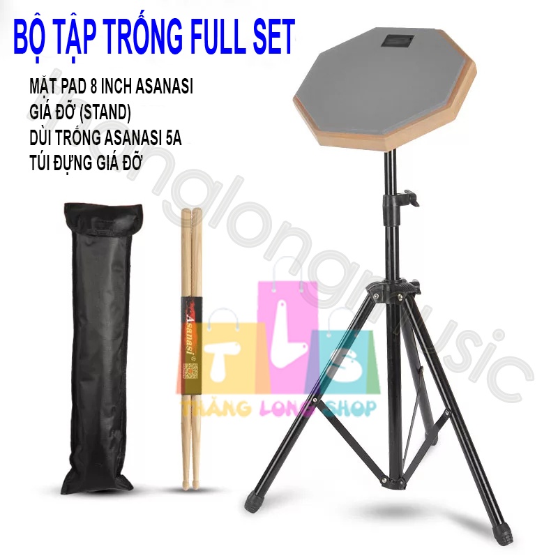 Bộ tập trống Full set là bộ phụ kiện đầy đủ cho người mới tập trống hoặc những người chơi chuyên nghiệp dùng để luyện tay trước khi biểu diễn.