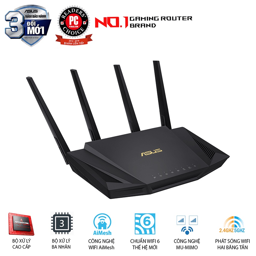 Máy tính & Laptop > Thiết Bị Mạng > Bộ Phát Wifi || Bộ phát wifi 6 Asus RT-AX3000 công nghệ MU-MIMO OFDMA AiMesh (Chính Hãng Asus Việt Nam)Còn hàng