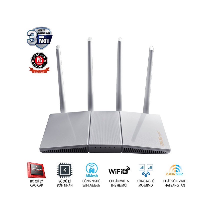 Máy tính & Laptop > Thiết Bị Mạng > Bộ Phát Wifi || Bộ phát wifi 6 Asus RT-AX55 AX1800Mbps MU-MIMO OFDMA AiMesh màu trắng (Chính hãng Asus Việt Nam)Còn hàng
