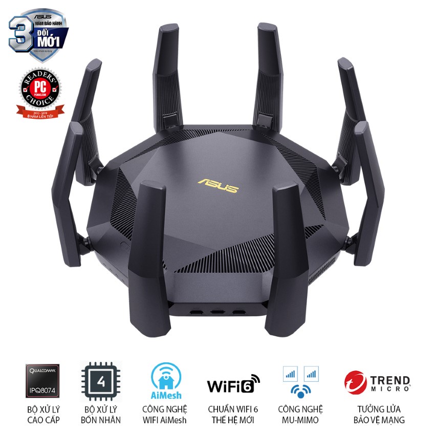 Máy tính & Laptop > Thiết Bị Mạng > Bộ Phát Wifi || Bộ phát wifi 6 Asus RT-AX89X AX6000Mbps Gaming MU-MIMO and OFDMA (Chính Hãng Asus Việt Nam)Còn hàng