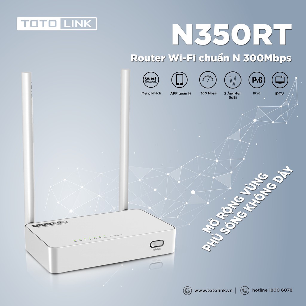Router Wi-Fi Băng chuẩn N 300Mbps TOTOLINK N350RT - Hàng Chính Hãng📌 GIỚI THIỆU SẢN PHẨM
