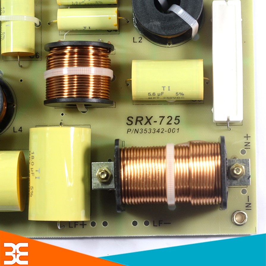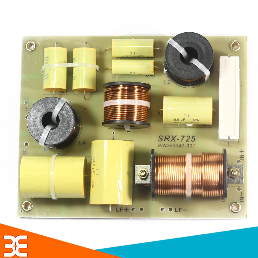 Bo Phân Tần Loa SRX-725Bo Phân Tần Loa SRX-725 dùng để phân chia tần số, tại đây một đường tín hiệu chính sẽ được phân chia thành các đường tín hiệu riêng biệt với tần số đã được điều chỉnh phù hợp để đưa tới mỗi loa con. Bo được thiết kế rất đặc biệt có thể ráp thùng 1 bass 1 treble hoặc 2 bass 1 treble. Bo Phân Tần Loa SRX-725 được thiết kế chắc chắn và đảm bảo an toàn mà không lo cháy nổ khi hoạt động trong công suất cao và nhiều giờ liền. Cuộn cảm được làm từ đồng cao cấp bọc 1 lớp chống oxi hóa và cách điện. Các linh kiện trên bo được cố định thêm bằng sợi dây thít chắc chắn.