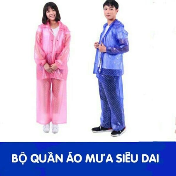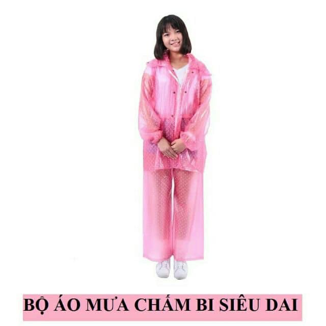 BỘ QUẦN ÁO MƯA CHẤM BI SIÊU DAI CHO NAM VÀ NỮ KÈM TÚI ĐỰNG TIỆN DỤNG