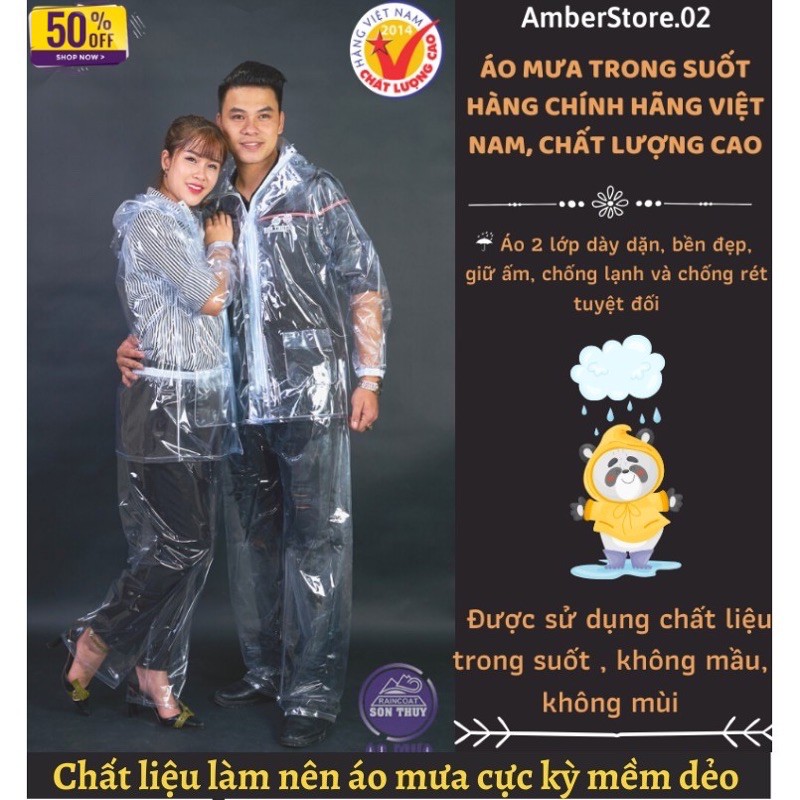 Bộ áo mưa trong suốt được sản xuất bằng nhựa dẻo PVC nguyên chất, không màu. Với độ dày lên tới 0.12mm đảm bảo hoàn toàn cho người sử dụng không bị thấm nước kể cả đi lâu dưới trời mưa.