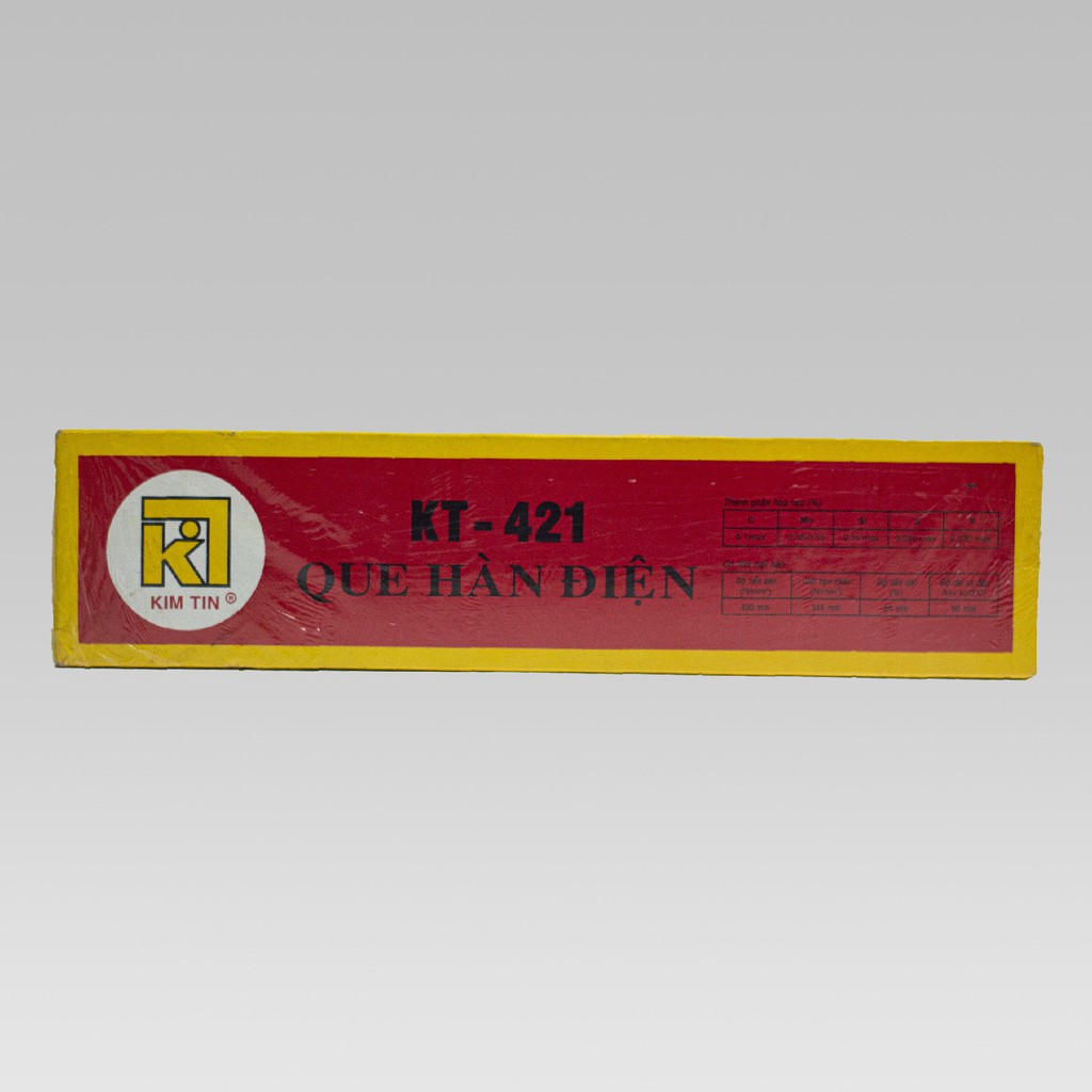 Que hàn sắt Kim Tín KT421 được đánh giá chất lượng tương đương tiêu chuẩn que hàn của Hiệp hội que hàn Hoa KỳThông số kỹ thuật Que hàn sắt 2.5mm Kim Tín KT 421: