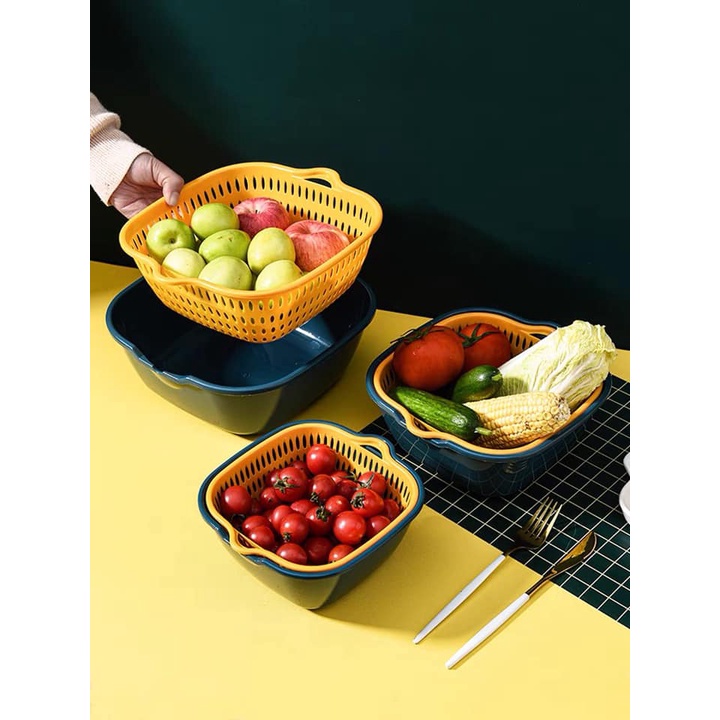 Rổ nhựa kèm chậu có thiết kế hình tròn bạn có thể dùng để đựng các loại trái cây, rau củ, thịt, cá...