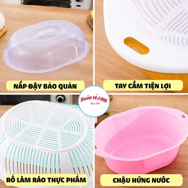 • Bạn vừa có thể rửa, làm ráo thực phẩm vừa có thể dùng nắp đậy để bảo quản, giữ cho thực phẩm luôn xanh tươi