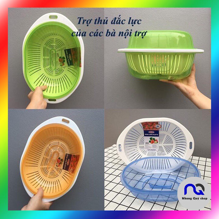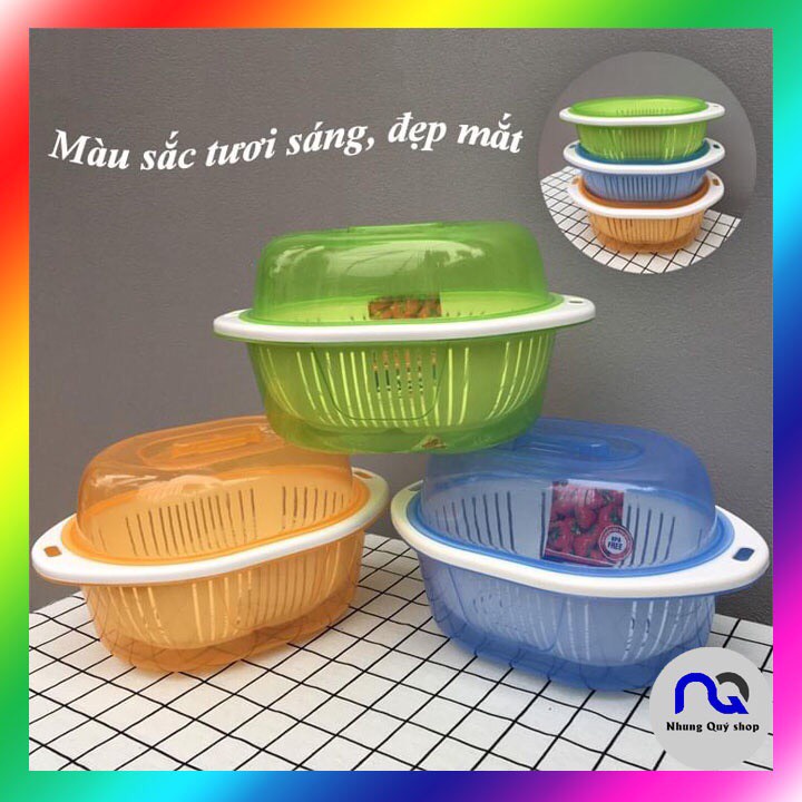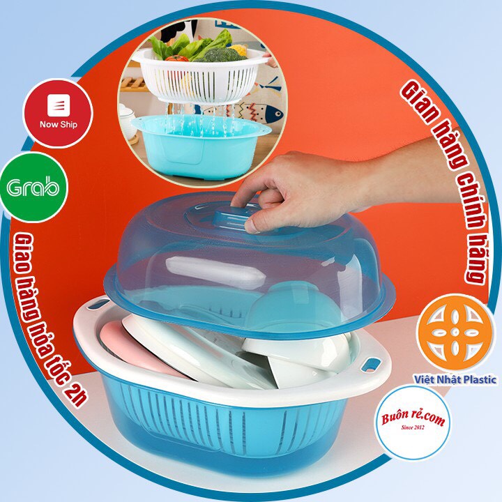 BỘ RỔ CHẬU 2 LỚP CÓ NẮP ĐẬY VIỆT NHẬT ĐỰNG ĐỒ RÁO NƯỚC RỬA HOA QUẢ RỬA RAU TIỆN LỢI