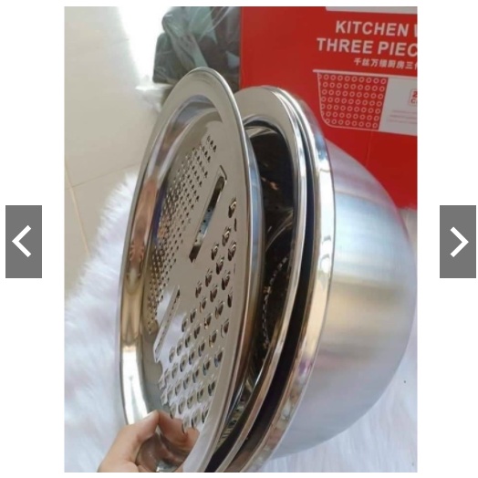 Nhà cửa & Đời sống > Dụng cụ nhà bếp > Bàn nạo, dụng cụ bào, cắt || BỘ RỔ NẠO INOX 304 ĐA NĂNG TIỆN LỢI 3 CHI TIẾT 26cmCòn hàng