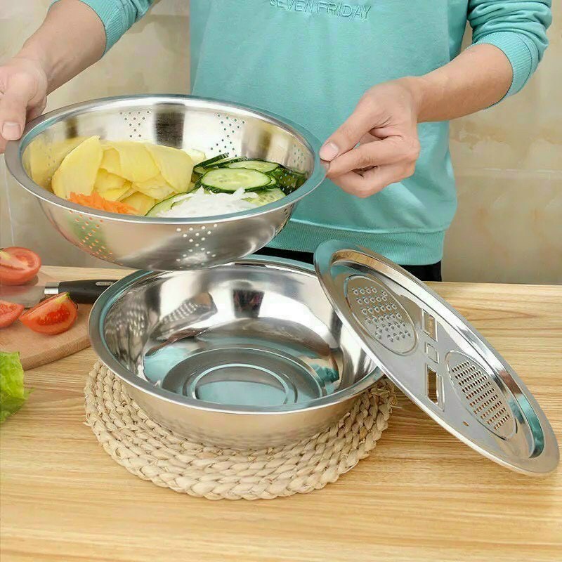 Nhà cửa & Đời sống > Dụng cụ nhà bếp > Bàn nạo, dụng cụ bào, cắt || BỘ RỔ NẠO INOX 304 ĐA NĂNG TIỆN LỢI 3 CHI TIẾTCòn hàng