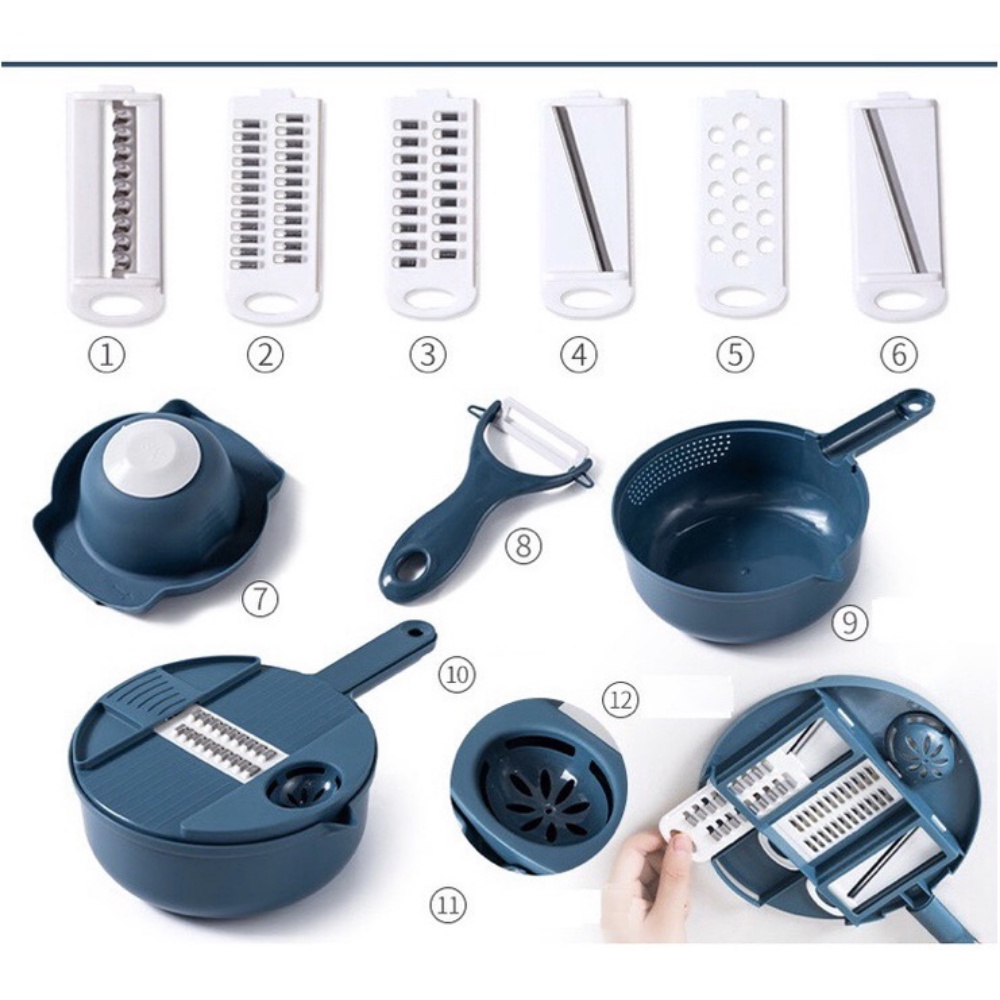 Nhà cửa & Đời sống > Dụng cụ nhà bếp > Bàn nạo, dụng cụ bào, cắt || BỘ RỔ NẠO RAU CỦ ĐA NĂNG 12 CHI TIẾT - ĐA NĂNG TIỆN DỤNG CHO NHÀ BẾPCòn hàng