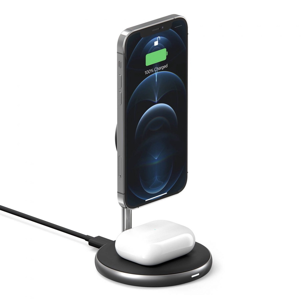 HyperJuice Wireless Charging 2 in 1 Stand sử dụng để sạc không dây cho iPhone 12 Series và Airpods
