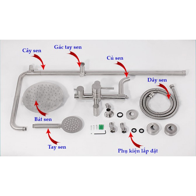 BỘ SEN CÂY CAO CẤP INOX304 KHÔNG GỈ , HÀNG CHÍNH HÃNG BẢO HÀNH 05 NĂM- Sen cây thân tròn inox sus304 hàng chính hãng bảo hành 3 năm