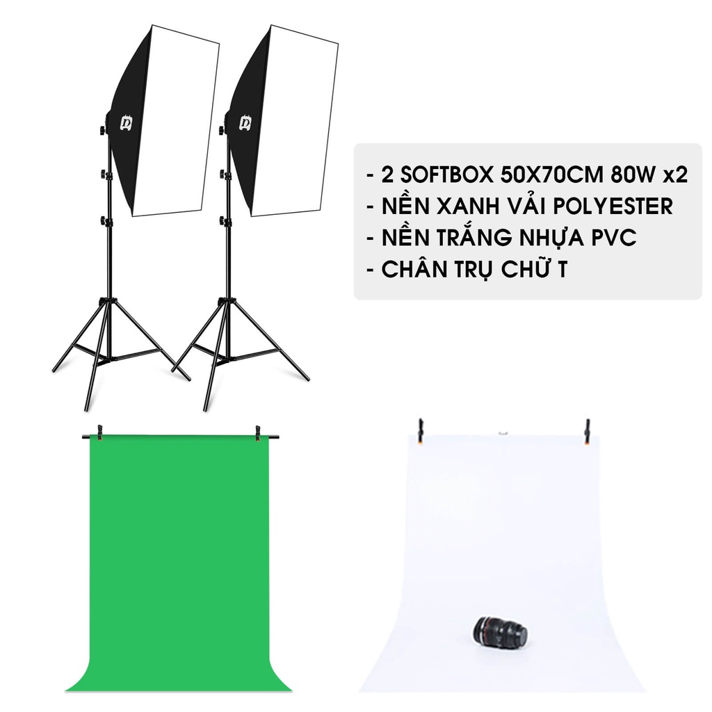 Thông tin đèn LED: công suất 80W, Softbox 70x50cm, chân dựng.