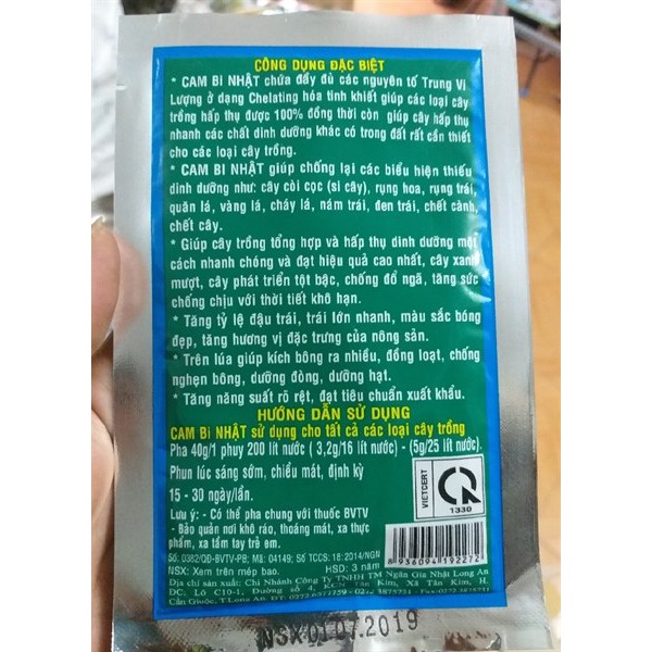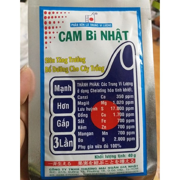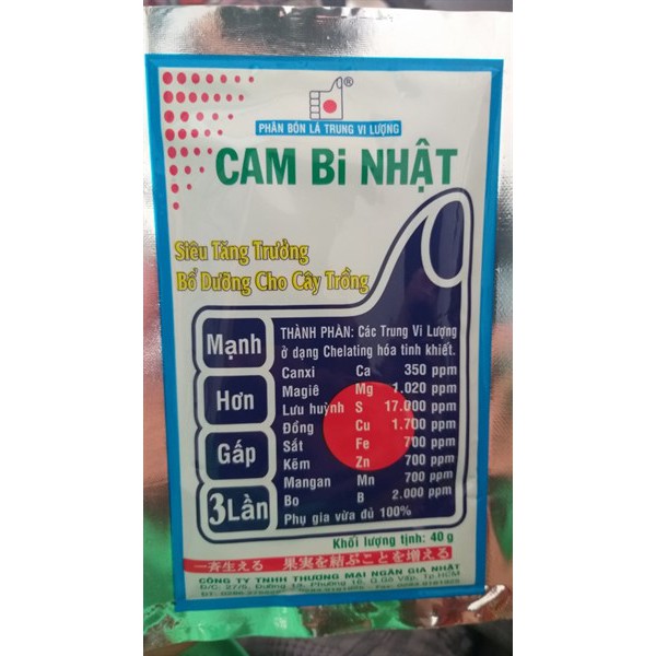 🌈Phân bón lá bổ sung trung vi lượng CAM BI NHẬT siêu tăng trưởng bổ dưỡng cho cây trồng giá - gói 40gr- Giúp cây trồng tổng hợp và hấp thụ dinh dưỡng một cách nhanh chóng và đạt hiệu quả cao nhất,cây xanh mượt,cây phát triển tột bật,chống đổ ngã,tăng sức đề kháng với sâu bệnh.