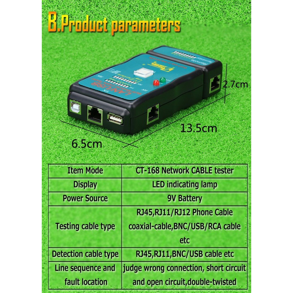 Máy tính & Laptop > Linh Kiện Máy Tính > Bộ Lưu Điện || BỘ TEST CÁP LAN + USB CT-168 (Có kèm Pin 9V)Còn hàng