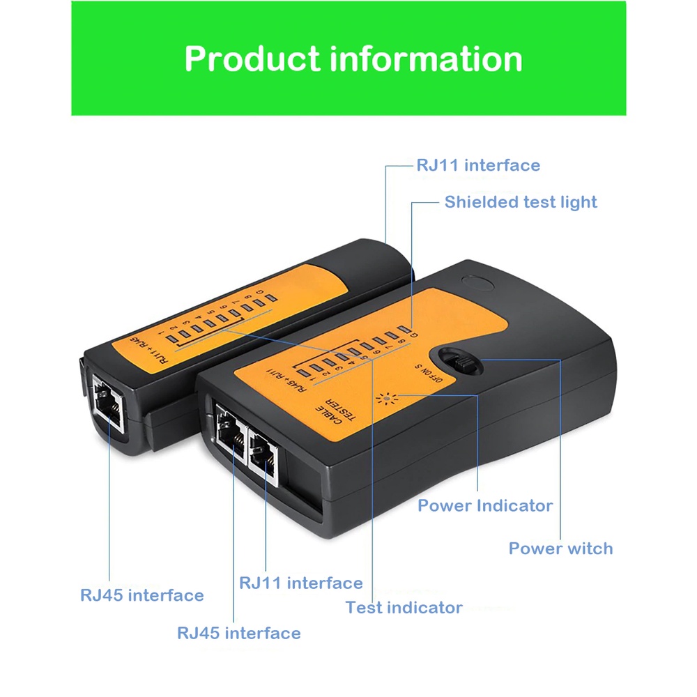 -Bộ test cáp mạng này sẽ giúp bạn kiểm tra xem cáp mạng của bạn có hoạt động bình thường không; cáp kết nối sai, bị ngắt mạch, hở mạch một cách dễ dàng và nhanh chóng.