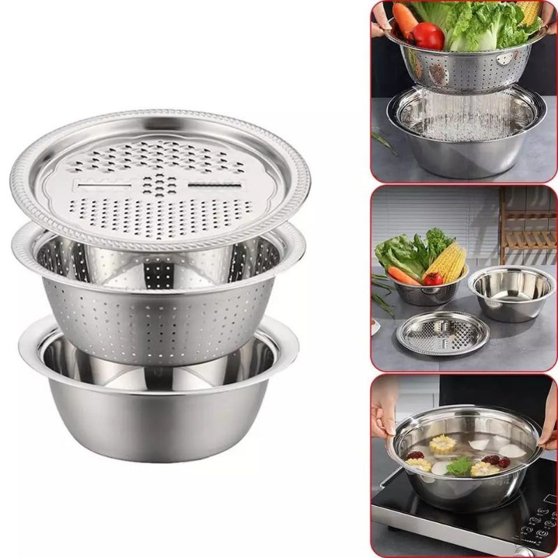 BỘ THAU RỔ NẠO INOX 304 ĐA NĂNG 3 CHI TIẾT---------------------0---0---0---0---------------------