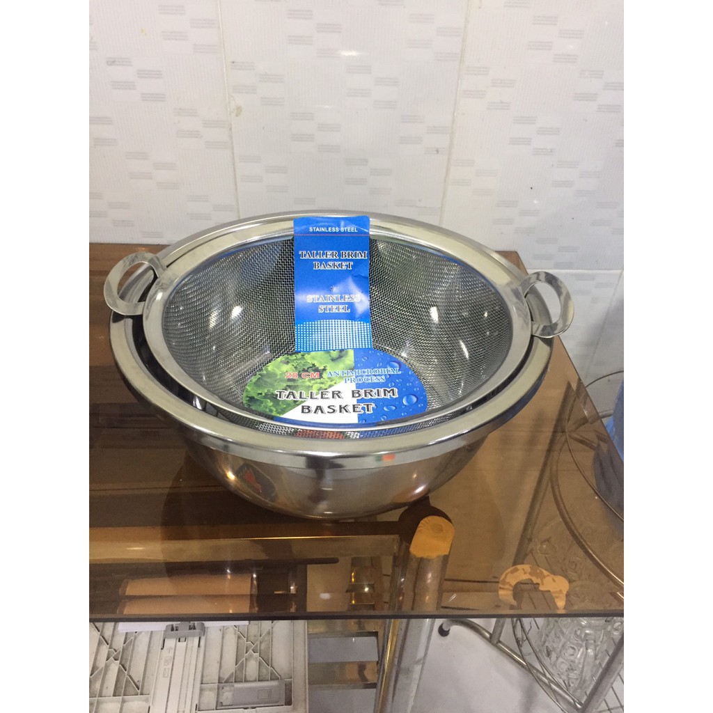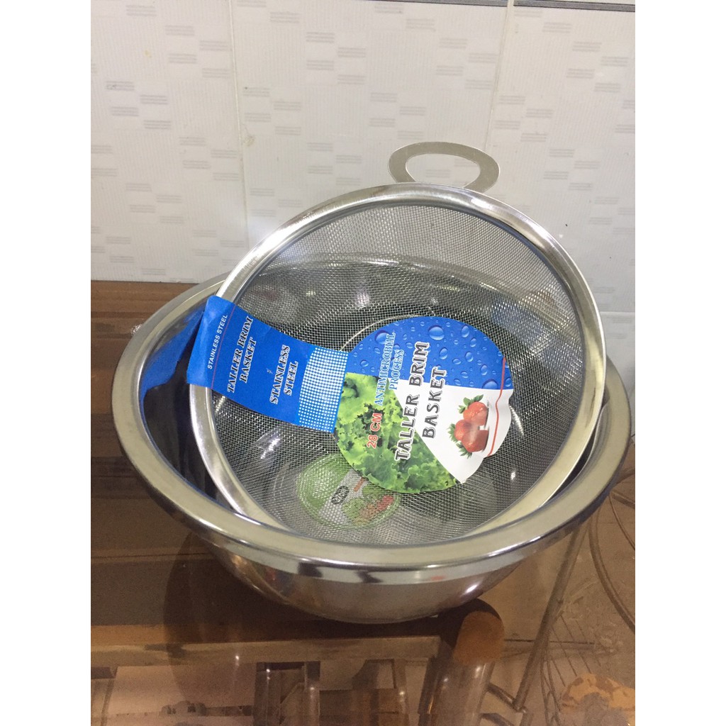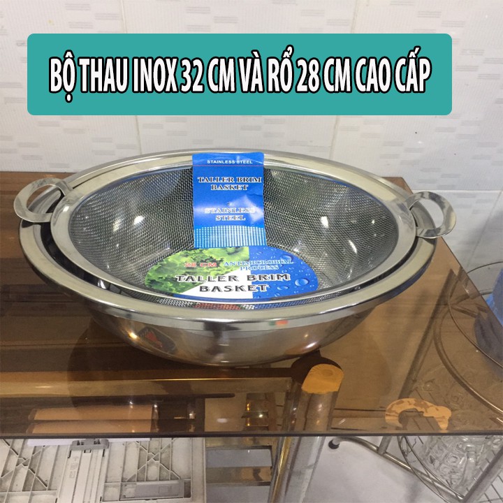 Nhà cửa & Đời sống > Dụng cụ chăm sóc nhà cửa > Chậu, xô & gáo nước || [BỘ THAU RỔ LỚN] Thau rửa rau, quả, trộn salad 32 cm và rổ lưới inox có đế 28 cm có quai đựng rau củCòn hàng