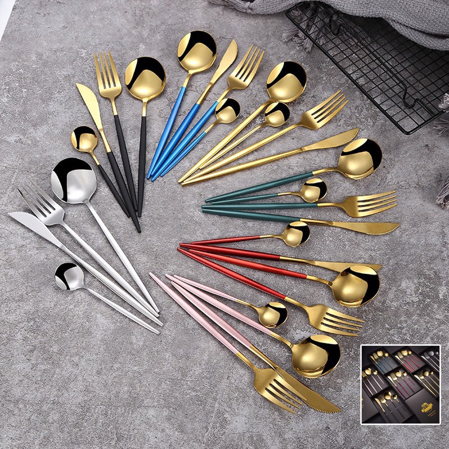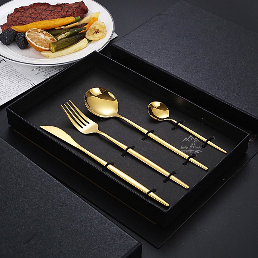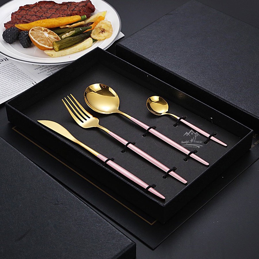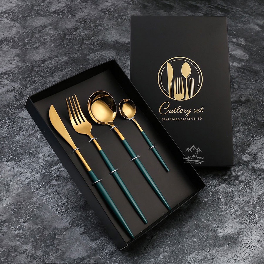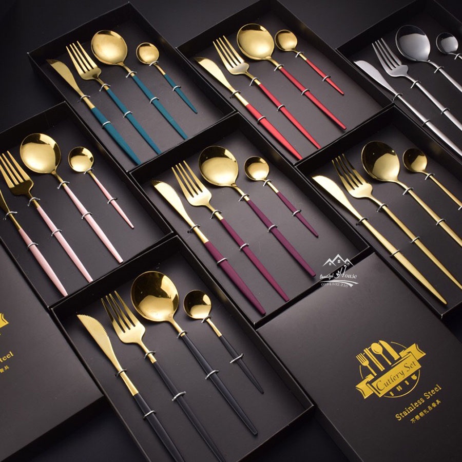 Nhà cửa & Đời sống > Bộ đồ bàn ăn > Bộ dao kéo || Bộ Thìa Dĩa 4 Món [Nhiều màu] Kèm Hộp Quà Tặng Cao CấpCòn hàng