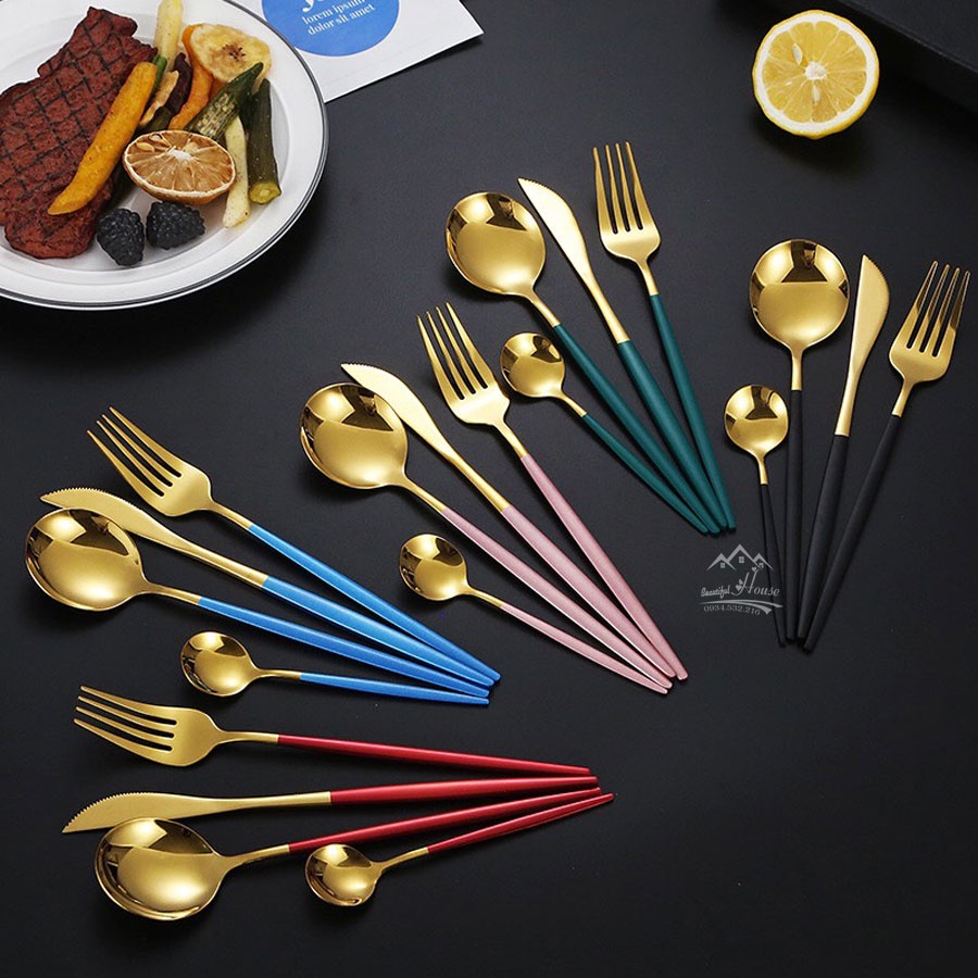 Bộ Thìa Dĩa 4 Món [Nhiều màu] Kèm Hộp Quà Tặng Cao Cấp