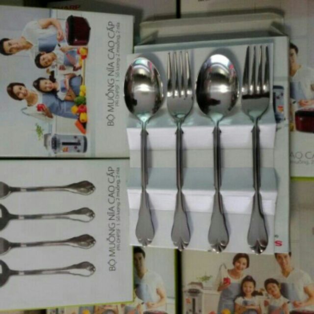 Bộ thìa dĩa bằng thép không gỉ, dầy dặn, bóng đẹpGồm 2 thìa và 2dĩa loại to đại