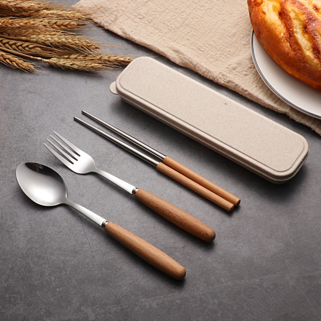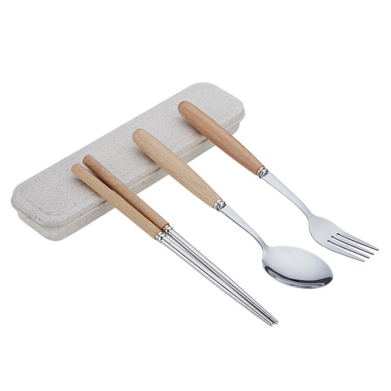 Nhà cửa & Đời sống > Bộ đồ bàn ăn > Dĩa || Bô Thìa dĩa đũa 3 món kèm Hộp LÚA MẠCH nhỏ gọn, tiện lợiCòn hàng