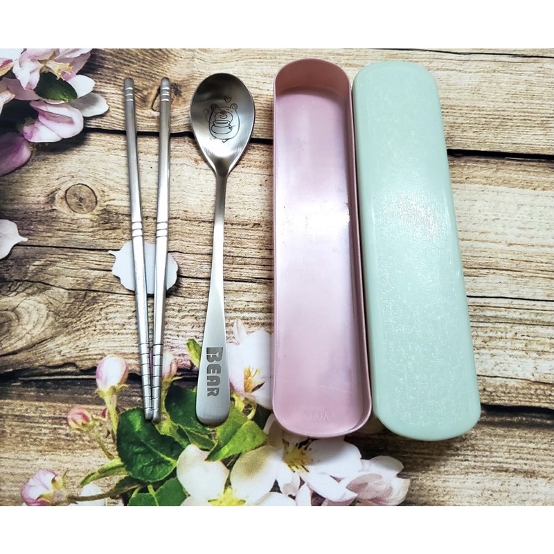 Bộ đũa thìa inox tay cầm an toàn có hộp đựng sang trọng tiện íchHàng loại 1 có dập logo Bear