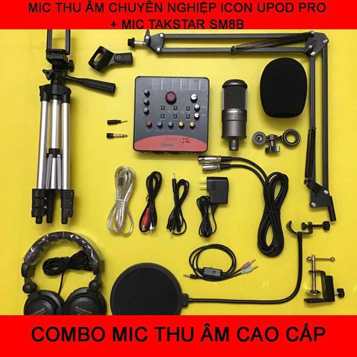 BỘ LIVESTREAM ICON UPOD PRO + MICRO THU ÂM Takstar SM-8B, COMBO LIVESTREAM CHUYÊN NGHIỆPBộ mic thu âm Icon Upod Pro + Micro thu âm Condenser Takstar SM-8B là một combo thu âm mini tại nhà dành cho tín đồ đam mê ca hát. Sound card Icon Upod Pro mà đi kèm với Micro condenser Takstar SM-8B cho âm thanh chất lượng cãi tiến hơn rất nhiều so với các Combo giá thấp hơn. Micro condenser Takstar SM 8B được dùng chuyên dụng cho tất cả các phòng thu âm, hầu hết các phòng thu tầm trung đều có Microphone này cả. Kết hợp thêm Phần mềm auto nữa thì combo này có thể trở nên tuyệt vời. Các bạn cùng xem bộ Combo này có những gì nhé, bộ livestream Icon Upod Pro + micro thu âm Takstar SM-8B Full phụ kiện