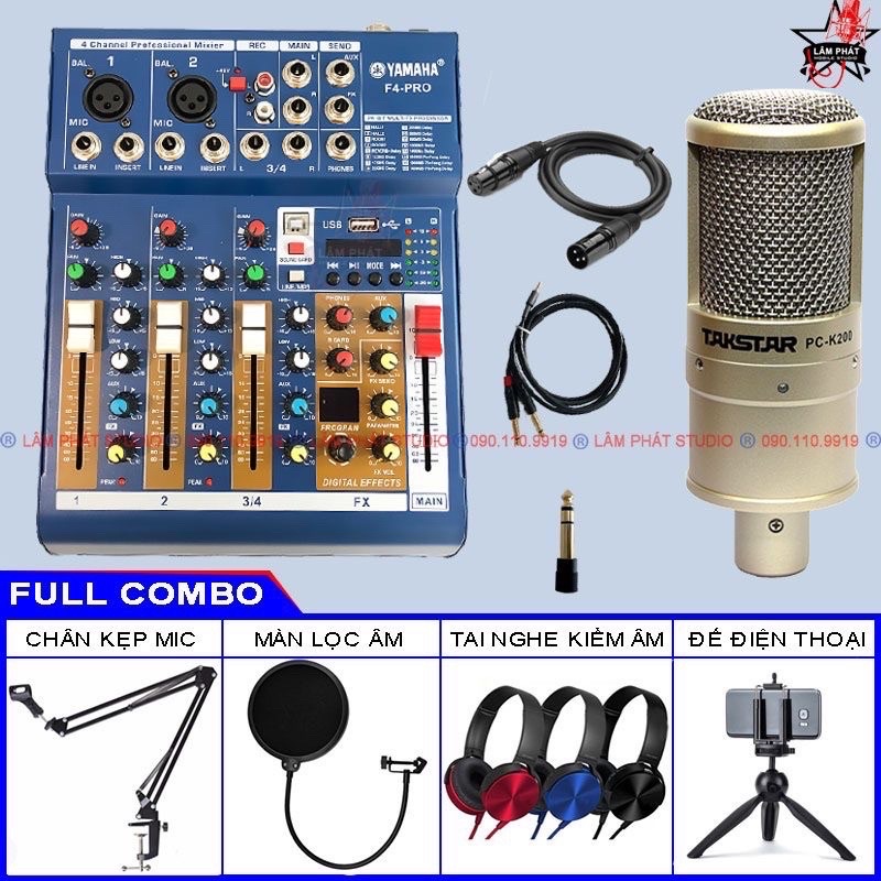 Chọn bộ Thu Âm Karaoke MIXER F4 PRO MỚI NHẤT + MIC PC K200 TAKSTAR BẢO HÀNH 12 THÁNG