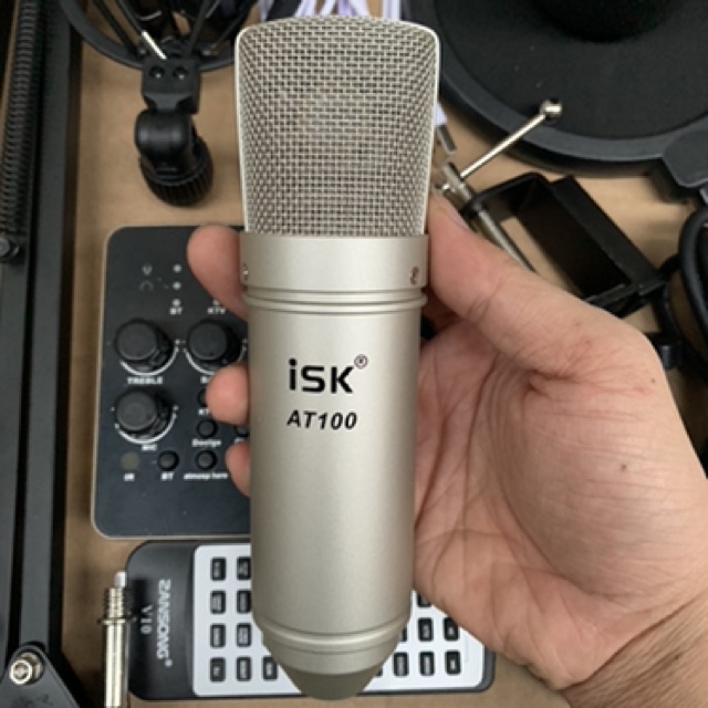 Thiết Bị Âm Thanh > Micro thu âm || Chọn Bộ Thu Âm livestream ISK AT100-Sound Card V10 Bluetooth chân kẹp+Màng Lọc bh 6 tháCòn hàng