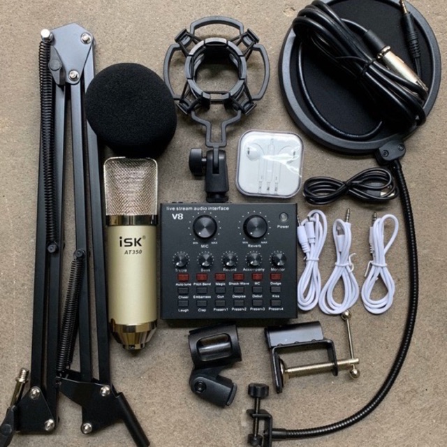 Chọn Bộ Thu Âm Mic isk AT350-Sound card v8 kèm phụ kiện và tai phone bh 6 tháng
