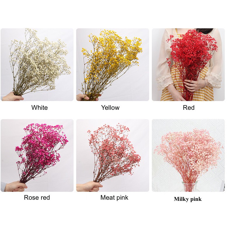 👉 Hoa khô baby ướp tươi hàng loại 1 nhập khẩu, màu sắc đẹp, hoa chắc ít rụng; hoa và cành được xử lý sấy cao cấp có mùi hương tự nhiên thơm dễ chịu. Khách lưu ý trên thị trường có loại chỉ đơn giản xịt màu lên hoa thôi, còn cành thì không nha, cành khô vàng nâu dễ rụng.