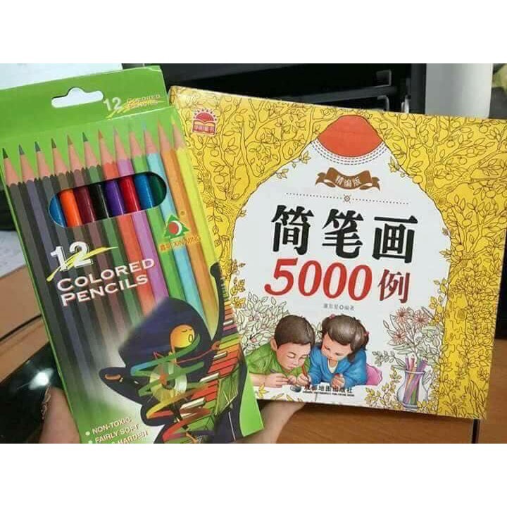 TÔ MÀU 5000 HÌNH KÈM 12 BÚT CHÌ MÀU:– Mỗi trang là các hình ảnh con vật , hiện tượng thiên nhiên đời thường gần gũi với bé , với 5000 nghìn hình ảnh khác nhau cho bé tha hồ tô vẽ.