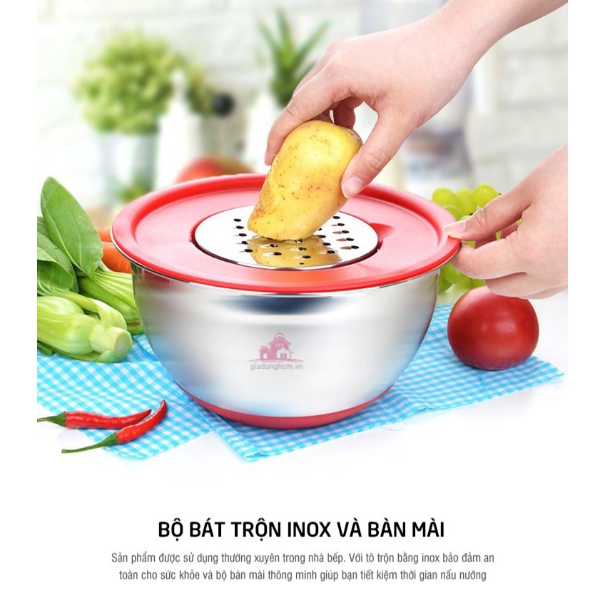 Nhà cửa & Đời sống > Dụng cụ nhà bếp > Bàn nạo, dụng cụ bào, cắt || BỘ TÔ TRỘN, BÀO CẮT RAU CỦ BẰNG INOX CÓ ĐẾ CHỐNG TRƯỢT LOCK&LOCK MIX3202 MIX3224Còn hàng
